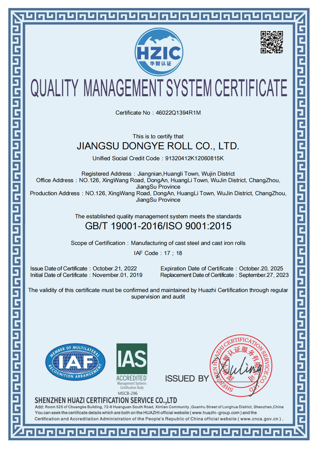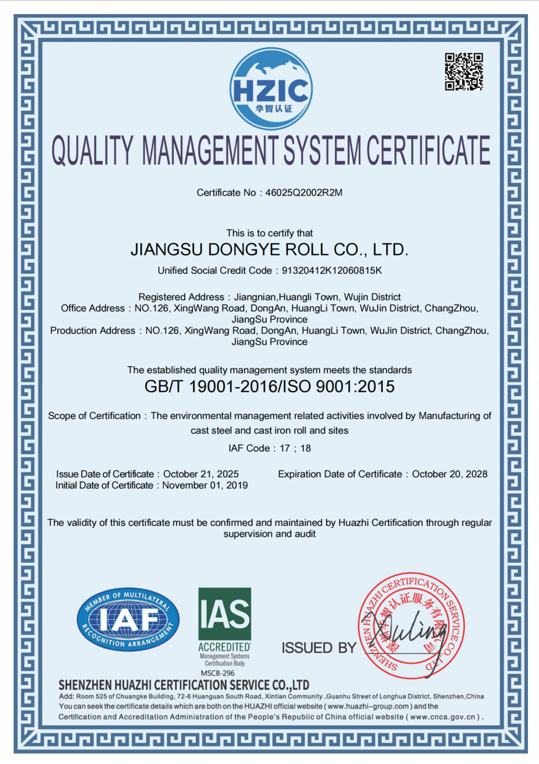 Jiangsu Dongye Roll Co., Ltd. is located at Dong’an, HuangLi Town, WuJin District, Changzhou city and is close to the Beijing-Shanghai Railroad, the No. 312 National Highway, NanJing-Shanghai Highway, YanJiang Highway as well as nearby the NanJing LuKou International Airport and the Changzhou International Airport with the convenient traffic condition.